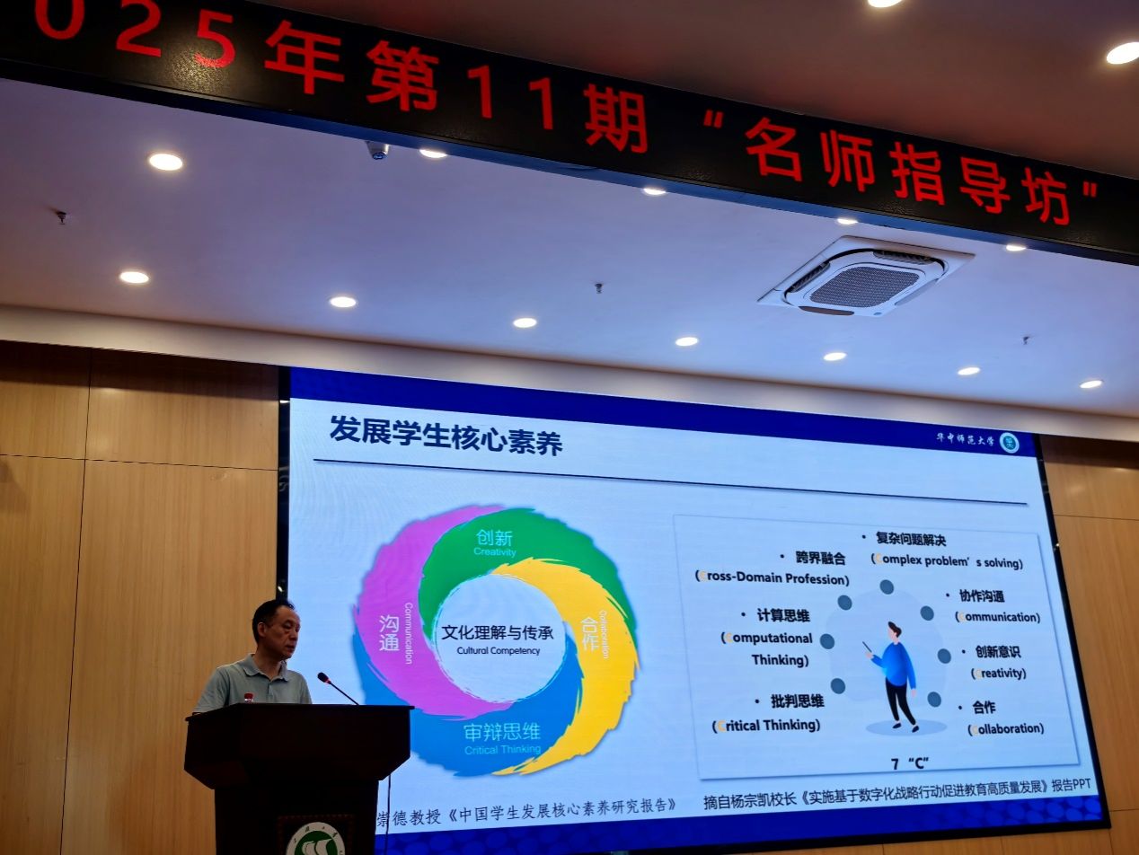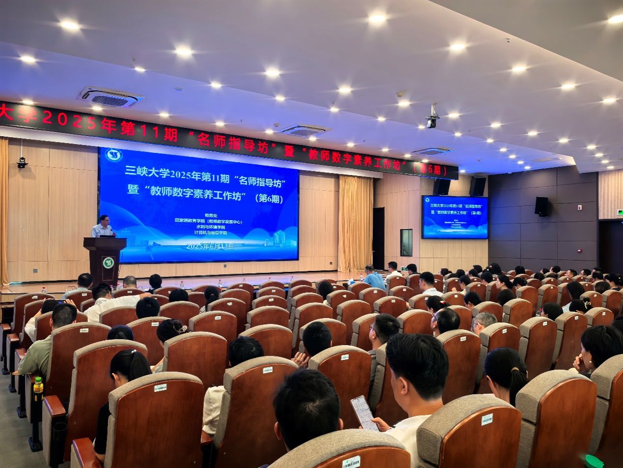 (通讯员 梁正琼 李莉 张丽超)为推动人工智能与教育教学深度融合,提升教师数字素养与教学创新能力,6月13日下午,三峡大学2025年第11期“名师指导坊”暨第6期“教师数字素养工作坊”在水科学与工程楼长江报告厅成功举办。华中师范大学人工智能教育学部二级教授杨九民应邀作了题为“人工智能赋能课程教学”的报告。各学院教学副院长、教学办主任、一流课程负责人、系主任、教学竞赛(含青教赛)校级以上获奖选手、纳入青年教师教学能力培养微格训练教师、水利与环境学院、计算机与信息学院全体教师参加了活动,活动由田家炳教育学院党总支书记曾德贤主持。