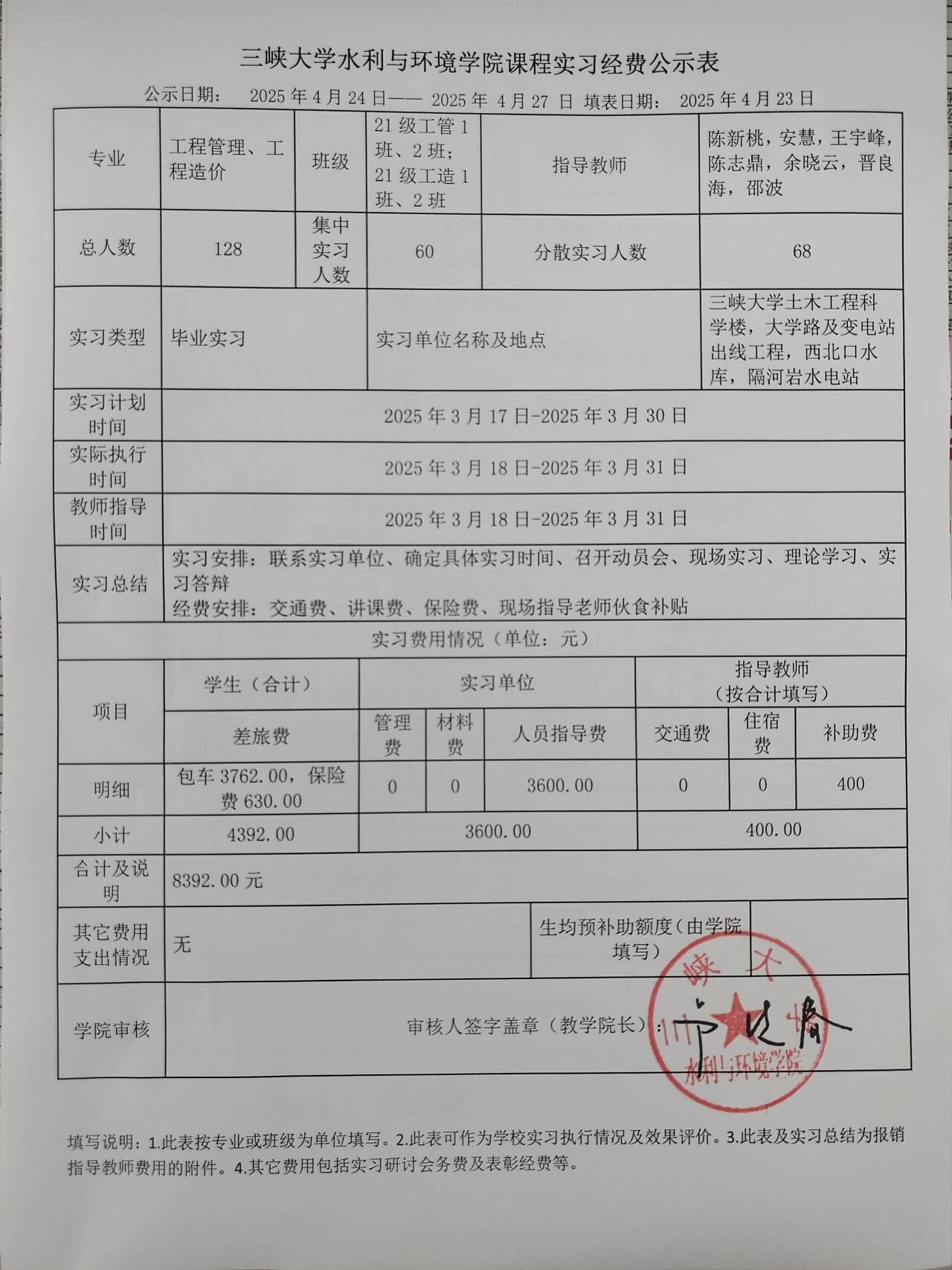下一条:三峡大学水利与环境学院课程实习经费公示表
