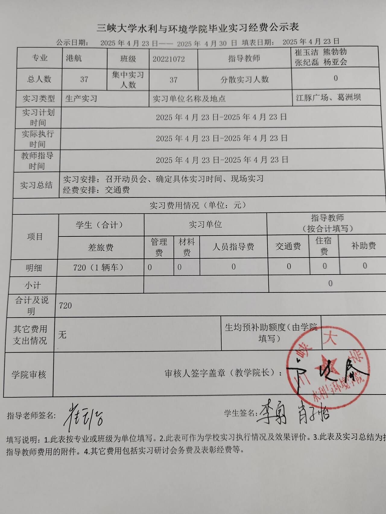 港航毕业实习经费公示表