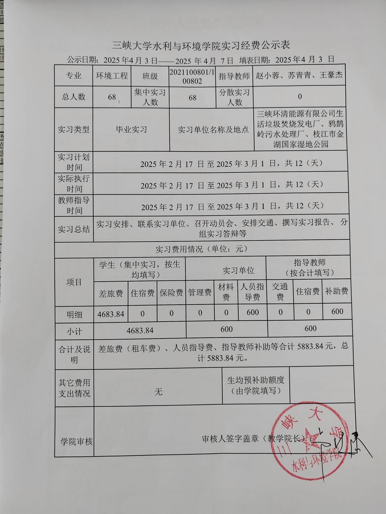 上一条:三峡大学水利与环境学院课程实习经费公示表
