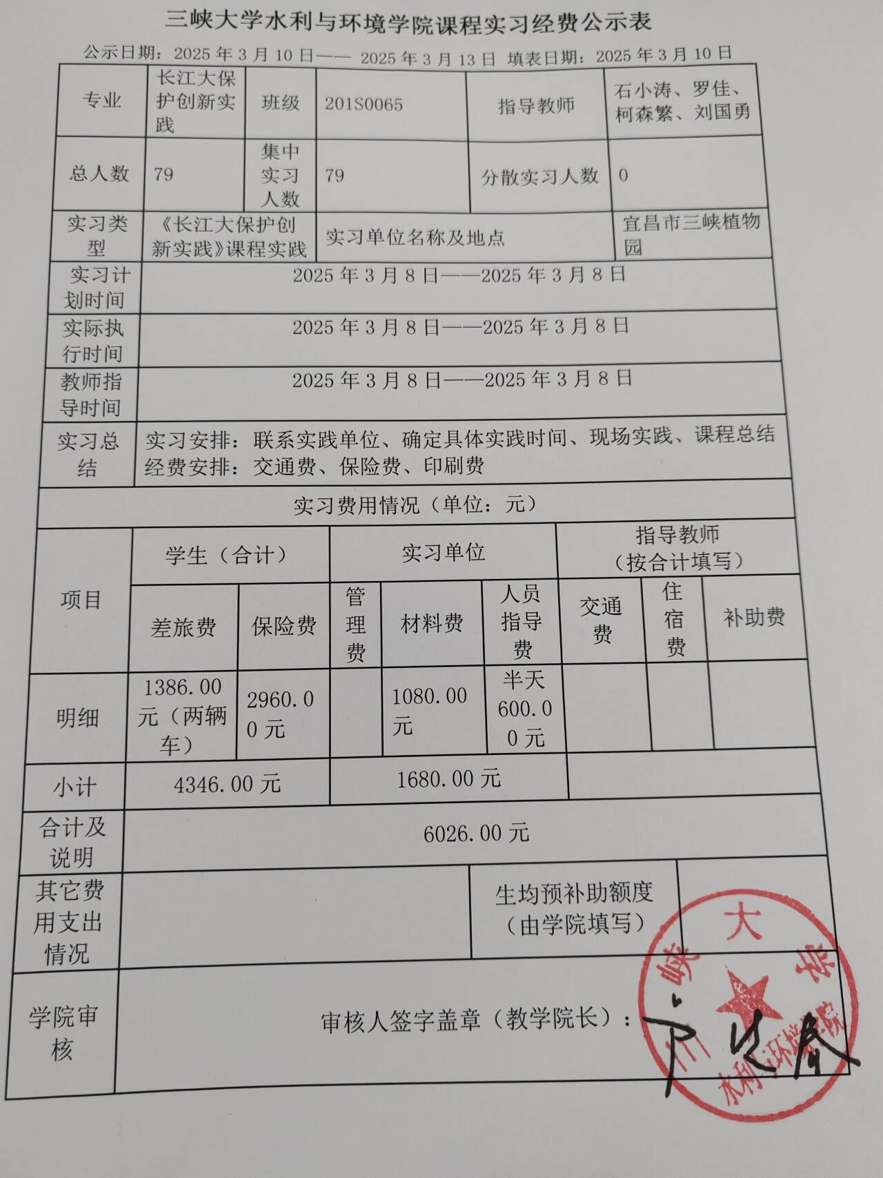 下一条:三峡大学水利与环境学院分散实习经费公示表