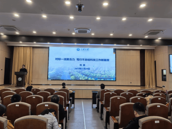 党委委员范勇围绕《对标一流聚合力 笃行不怠绘科技工作新篇章》展开分享。报告通过详实的数据梳理了学院近年在课题申报、项目攻关、专利转化、成果奖励、平台建设等方面的发展现状,分析了存在的短板与潜在的发展机遇,结合冲刺一流学科建设目标提出了对应的提升路径与措施。