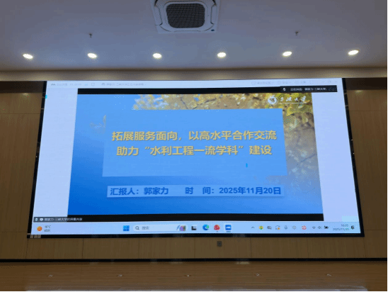 党委委员郭家力聚焦《拓展服务面向 以高水平合作交流助力“一流学科”建设》进行阐述,报告结合省内水利与环境技术服务领域激烈的竞争格局,剖析了学院在对外交流合作中面临的瓶颈问题,解读了高校承接水利横向项目的新机遇,分别从学院和科研团队层面提出了突破发展困境、提升服务社会能力的具体路径。