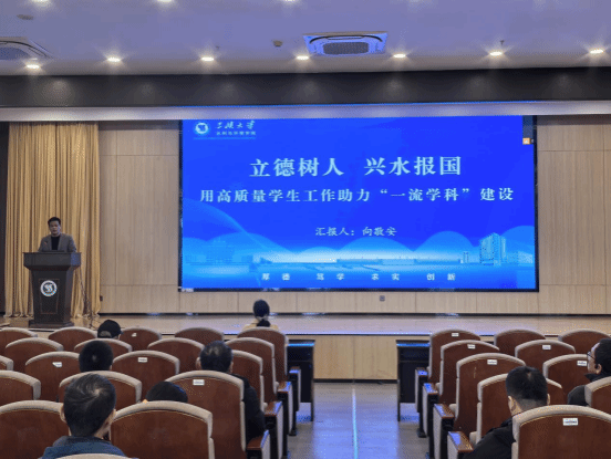培训会上,党委副书记向敬安以《立德树人 兴水报国 以高质量学生工作助力一流学科建设》为题作报告。报告回顾了学院学生工作在招生就业、双创竞赛、榜样选树等方面取得的成绩,深入剖析了当前工作中面临的新形势与新挑战,并结合一流学科建设目标提出了精准化的提质增效策略。