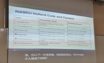 在南洋理工大学,我参加了由Ms. Jennifer Du教授主讲的《Career Planning & Development》课程。这门课程通过自我评估、职业目标设定以及与同学们的互动讨论,让我对自己的未来职业规划有了更明确的思考。通过与老师和同学们的交流,我更加清楚地认识到自己的兴趣所在,以及未来希望从事的职业方向。