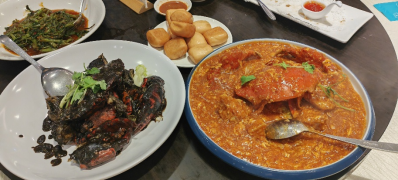 除了这些传统小吃,我还在新加坡的螃蟹之家品尝了极具地方特色的辣椒螃蟹和蛋黄螃蟹,这两道菜让我对新加坡的海鲜美食有了全新的认识。辣椒螃蟹的做法非常特别,螃蟹肉质鲜嫩,辣椒酱浓烈而不失香甜,搭配独特的香料和奶油的味道,形成了丰富的层次感,辛辣与奶油的浓郁味道交织在一起,令人回味无穷。每一口螃蟹都带着辣椒和胡椒的微辣刺激,但又不至于让人感到过于辛辣,反而恰到好处地刺激了味蕾。